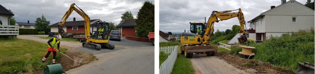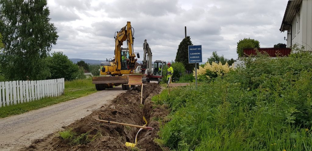 Vi har gravd omtrent 12.000 meter hittil (pr 21. juni). Jobben skal være ferdig i midten av oktober.