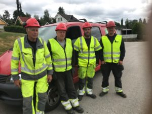 På bildet ovenfor ser vi Martin Breisjøberg, Tom Bergseteren, Jørgen Bergseteren og Jim Roger Åsen som alle jobber med fiber til hjemmet i Solør.